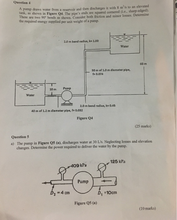 Question 4 Pump Draws Water From A Reservoir And Then Chegg